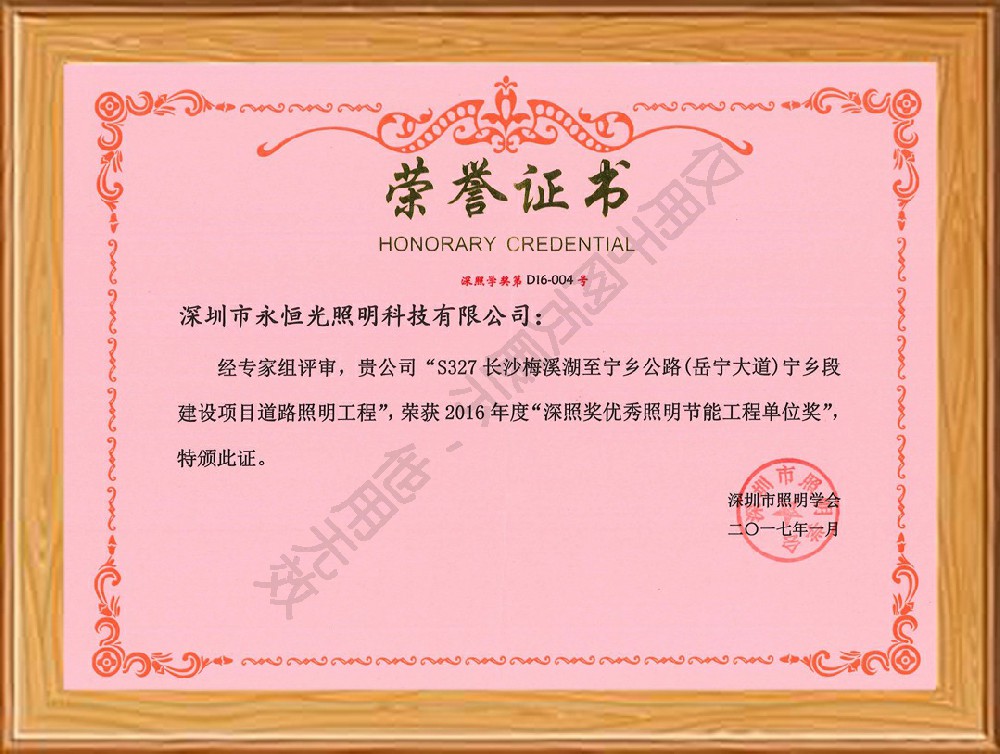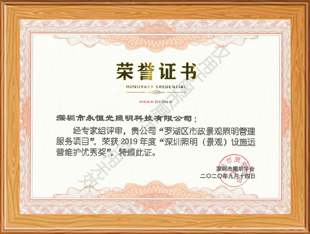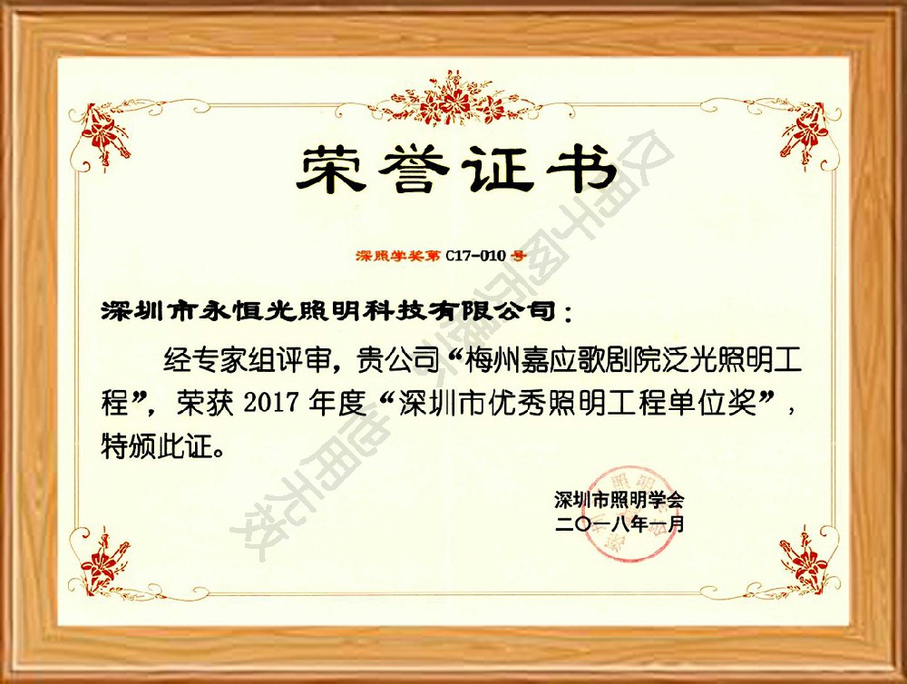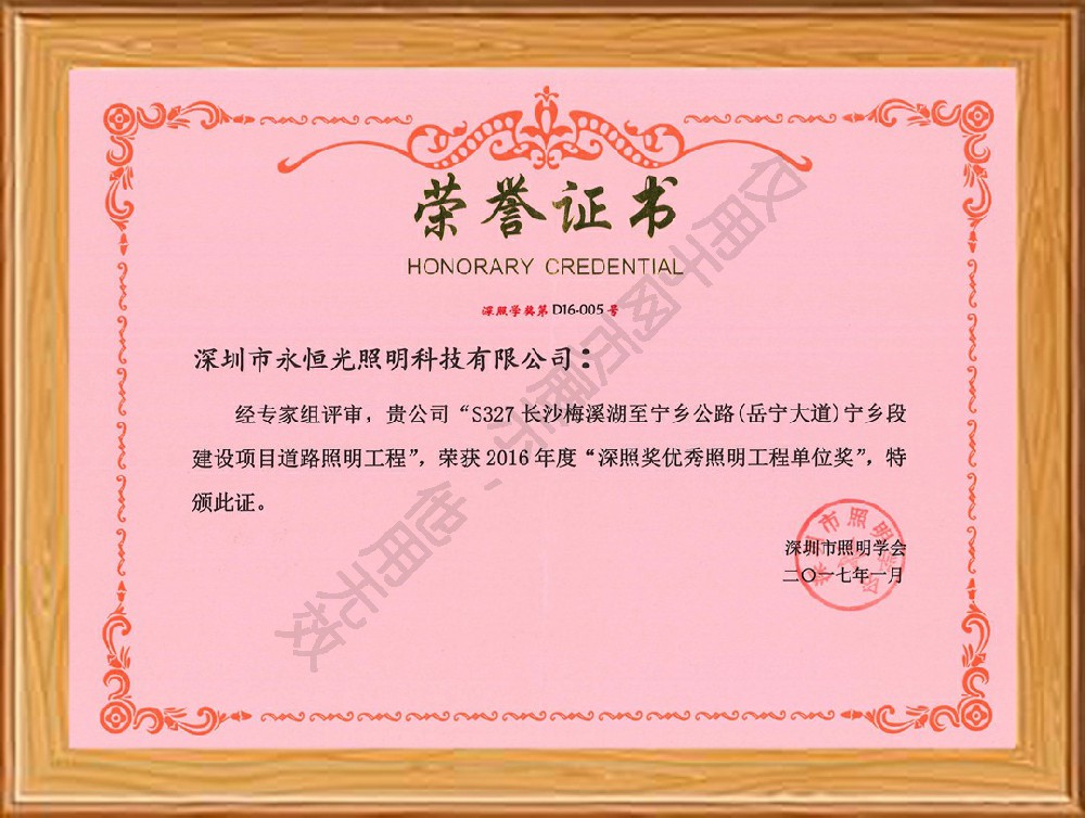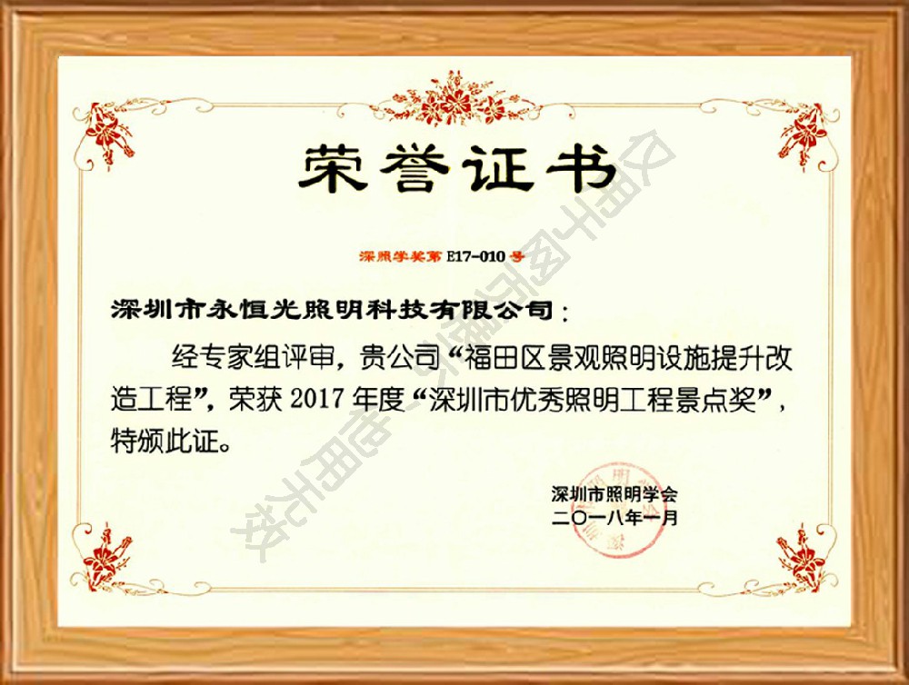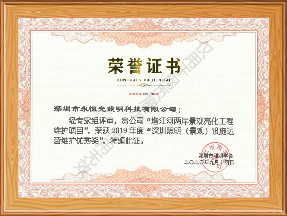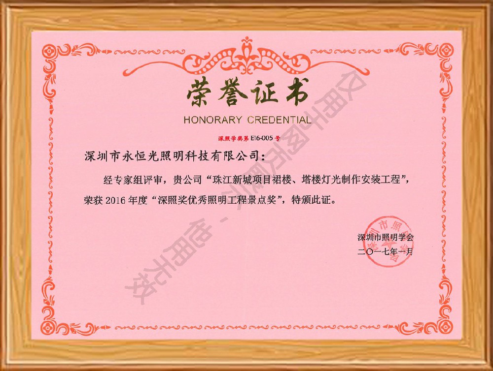 榮譽獲獎證書